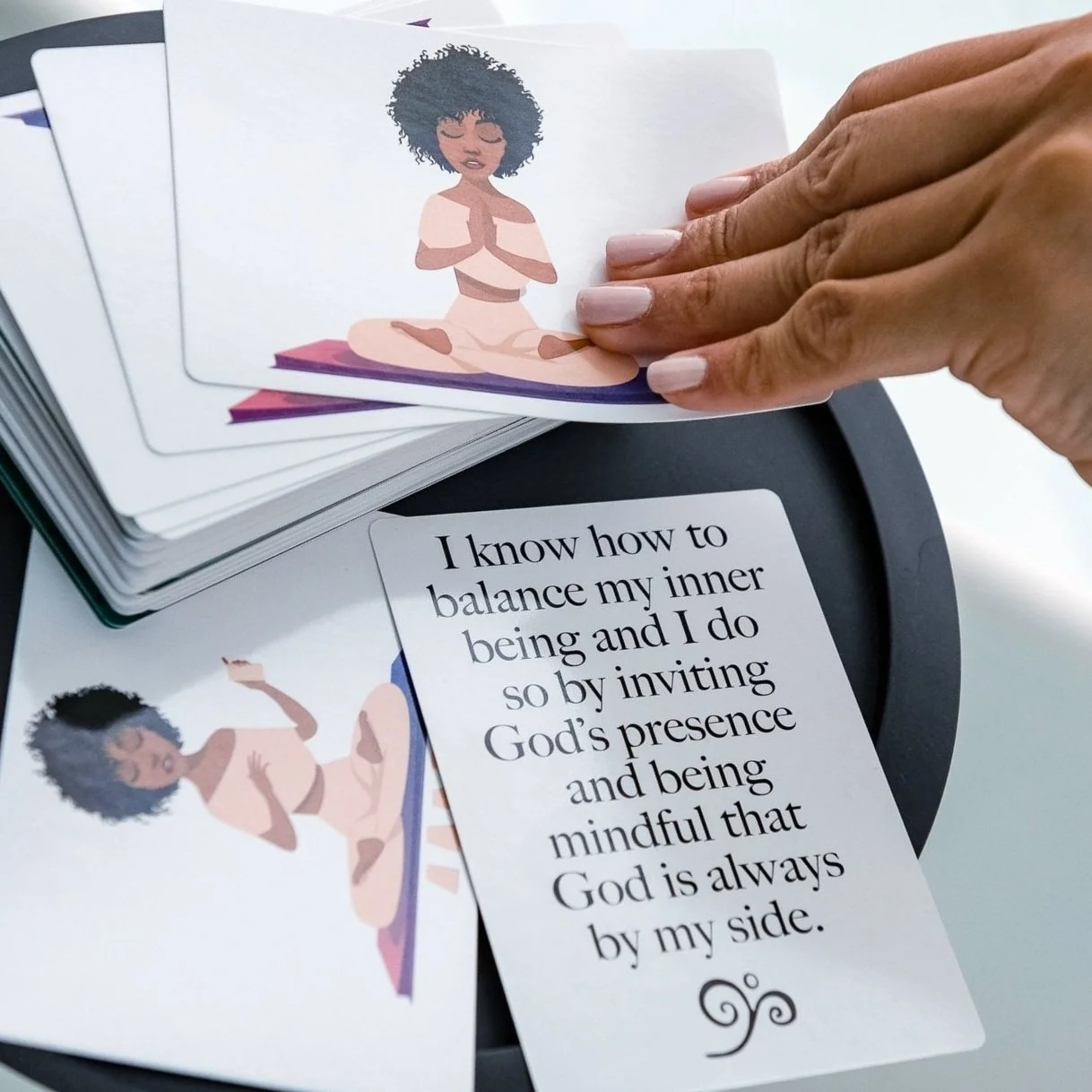 The Spirit Shuffle™ is more than a deck of cards—it's a guided journey of prayer, affirmation, meditation, and self-reflection. Rooted in faith, inspired by personal healing, and created for women who crave connection, stillness, and spiritual clarity. Each card is a divine prompt to help you sit with God and strengthen your foundation.